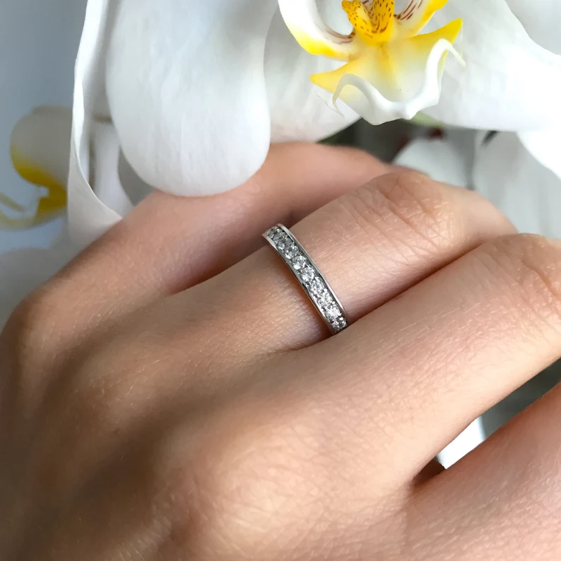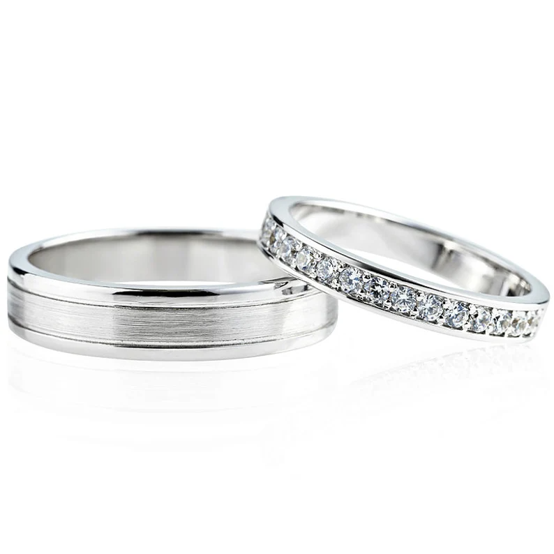 Elegant Mens Wedding Band Shinny Geometric Cut Stones Romantic Style Rhodium Plated for Promise Occasions