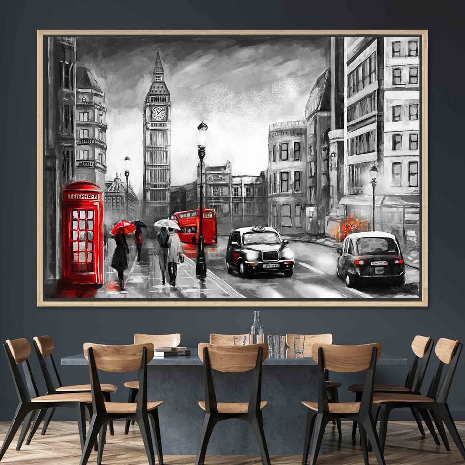 Elegant Modern Art Canvas Print - Abstract Cityscape with Big Ben,1P:Gold Framed