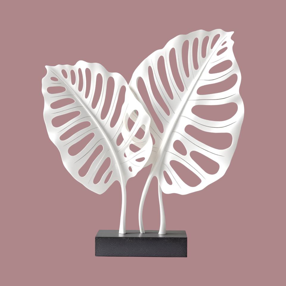 Elegant Modern Leaf Sculpture White Monstera Art Luxury Contemporary Home Office Decor Unique Iron Aluminium Metal Gift Idea