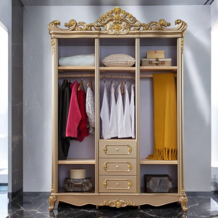 Elegant Modern Luxury Mahogany Wood Armoire Gold Carving Wardrobe Bedroom Furniture for Living Room and Hotel