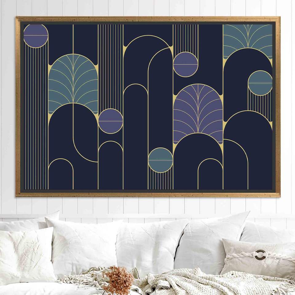 Elegant Modern Purple Glass Wall Art: Abstract Geometric Printed Canvas,GOLD FRAMED CANVAS