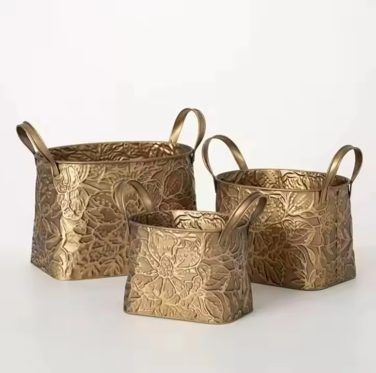 Elegant Modern Solid Brass Eco-Friendly Lightweight Outdoor Planters with Handle Durable Flower Pots for Home Garden Decoration