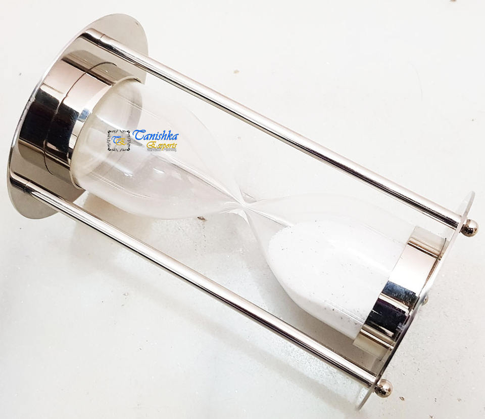 Elegant Modern White Sand Decorative Hourglass Sand Timer Wholesale Brass Nickel Plated Handmade Home Office Christmas Desk