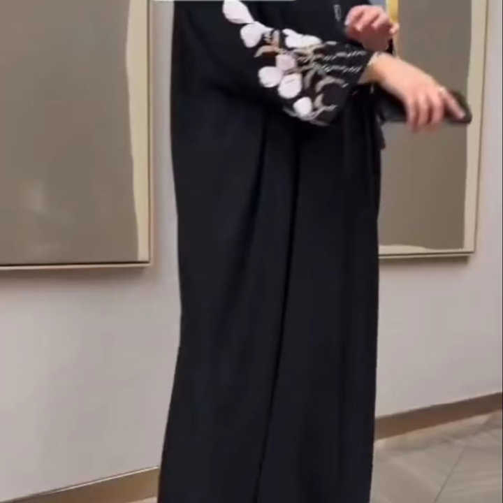 Premium Women's Abaya Elegant Dubai Traditional Formal Wear with Hand Embroidered Floral Sleeves Breathable Cloth for Muslims