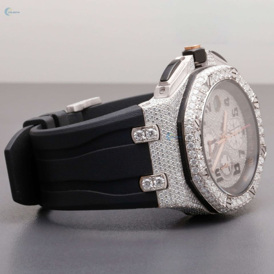 Elegant Moissanite Diamond Watch with Black Leather Strap Waterproof Design for Business and Casual Wear Available for Low Price