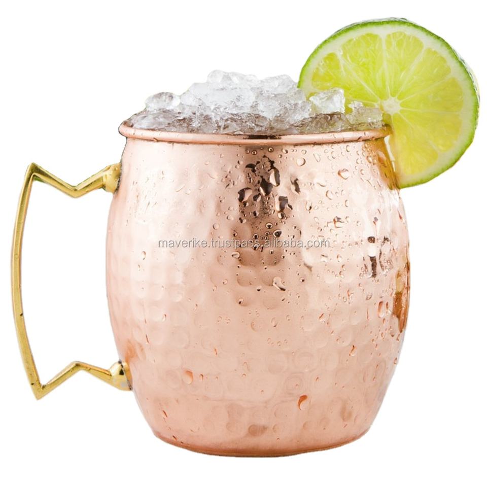 Elegant Moscow Mule Copper Mugs Hammered Pure Copper Cup With Gold Brass Handles for Making Beverages Cool Drinks