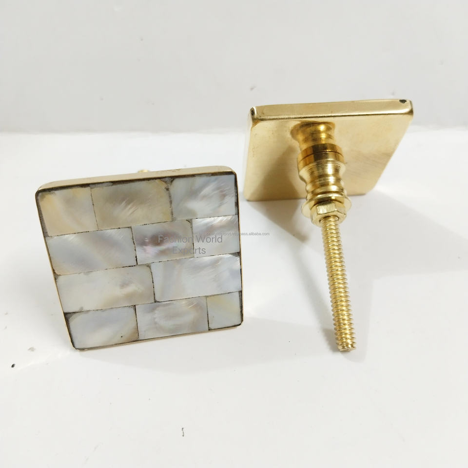 Elegant Mother of Pearl Door Knob with Square Brass Handle Vintage Style Decorative Hardware for Interior Doors