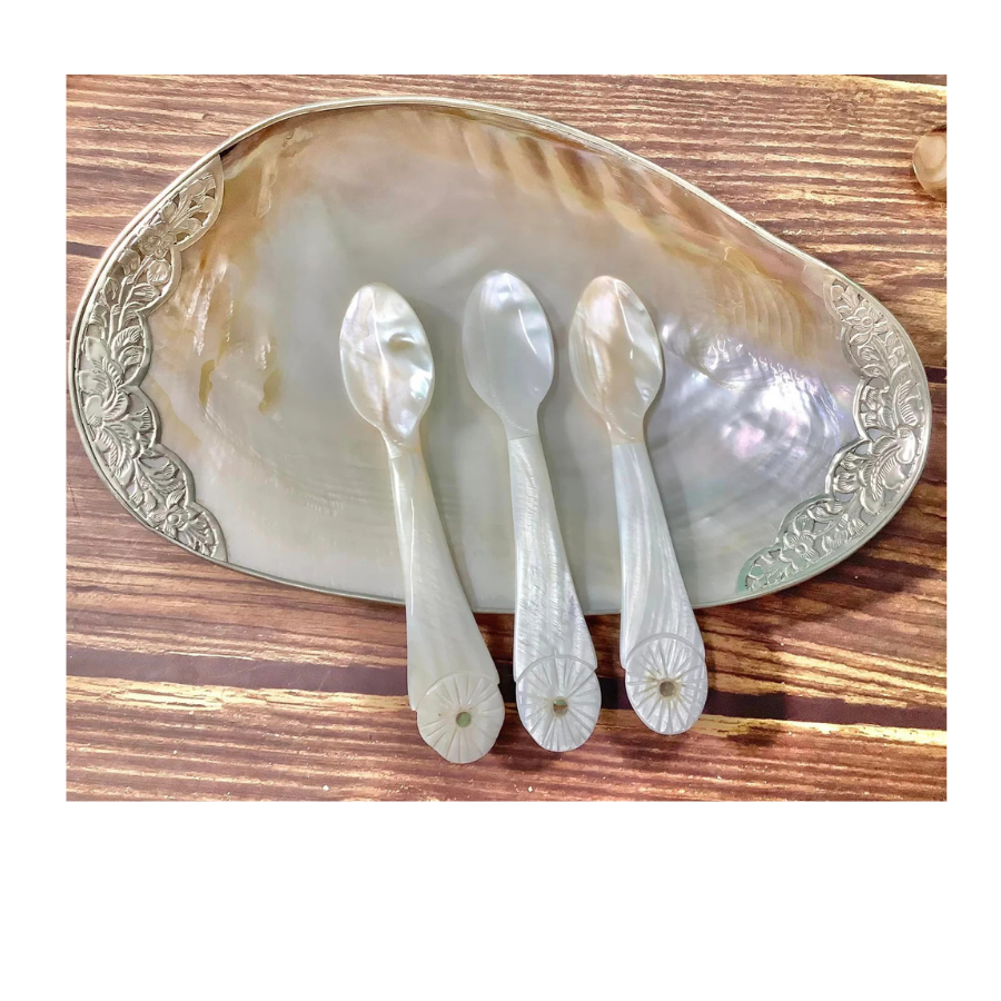 Elegant Mother of Pearl Serving Plate Made from Natural Yellow Lip Oyster Shell Perfect for Caviar Sushi and Appetizer Display