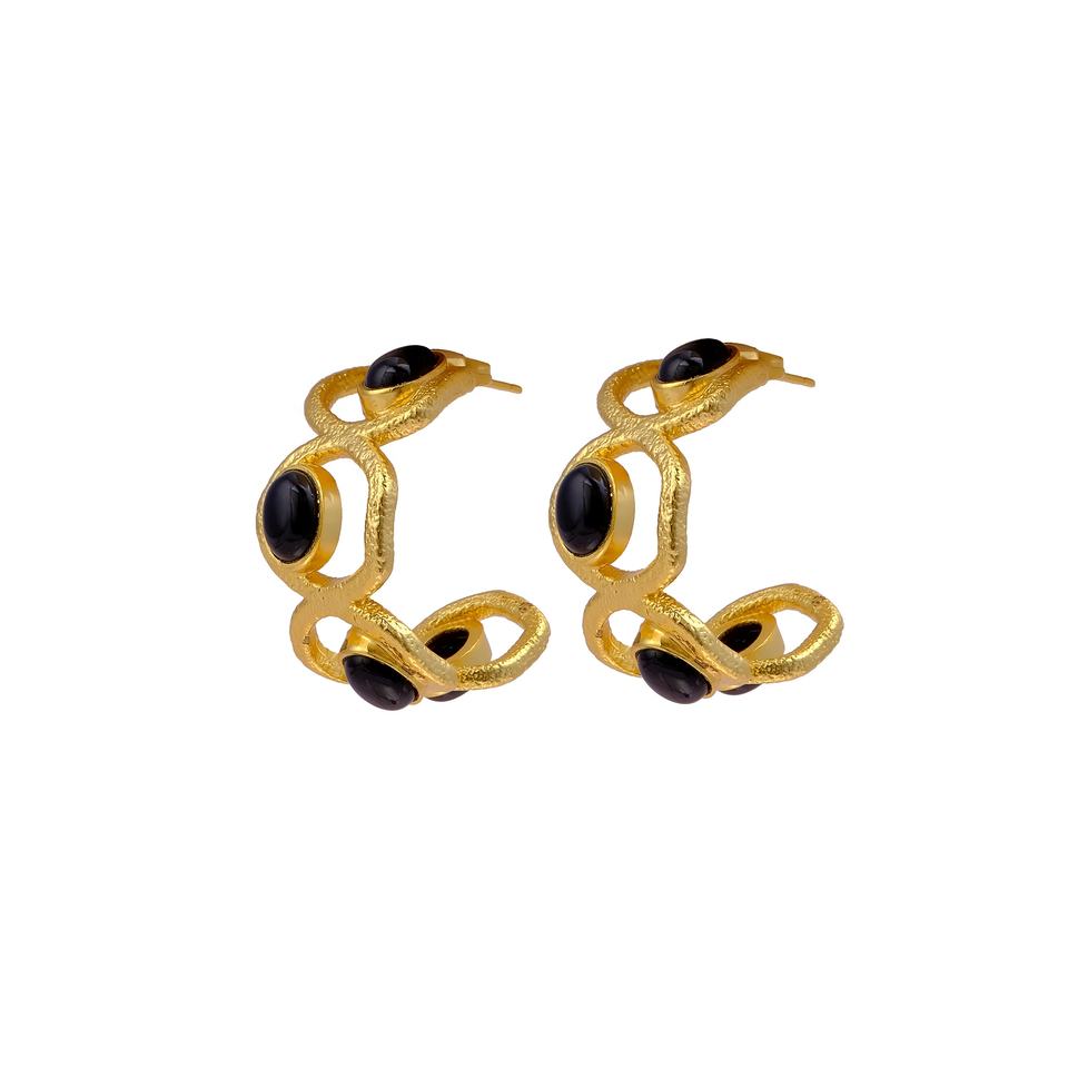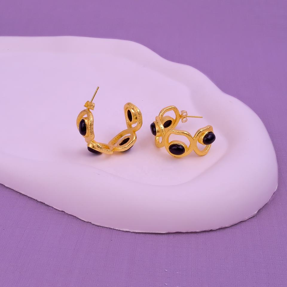Elegant Natural Black Onyx Gemstone Handmade Gold-Plated Hoops Luxury Artisan Designer Statement Studs Earring Fashion Wholesale