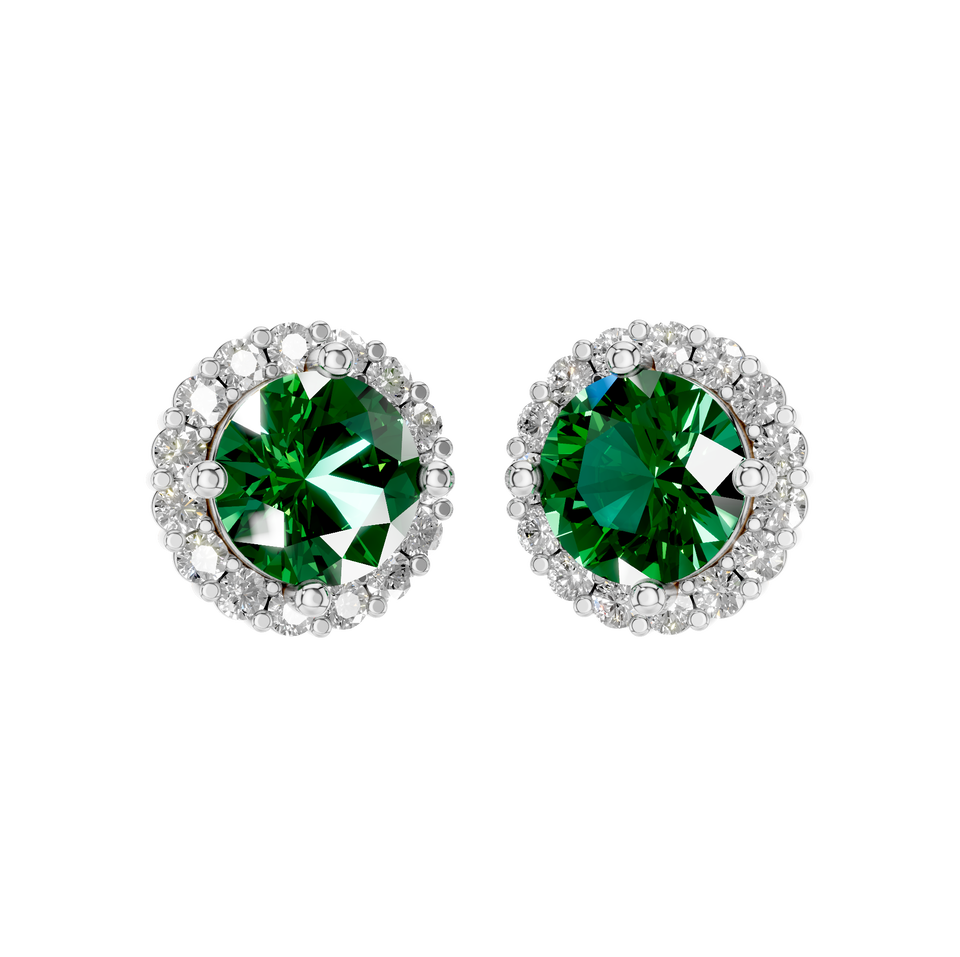 Style:Round Halo Emerald Stud Earrings with Natural Diamonds
