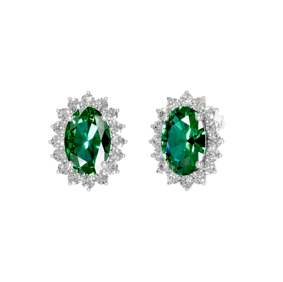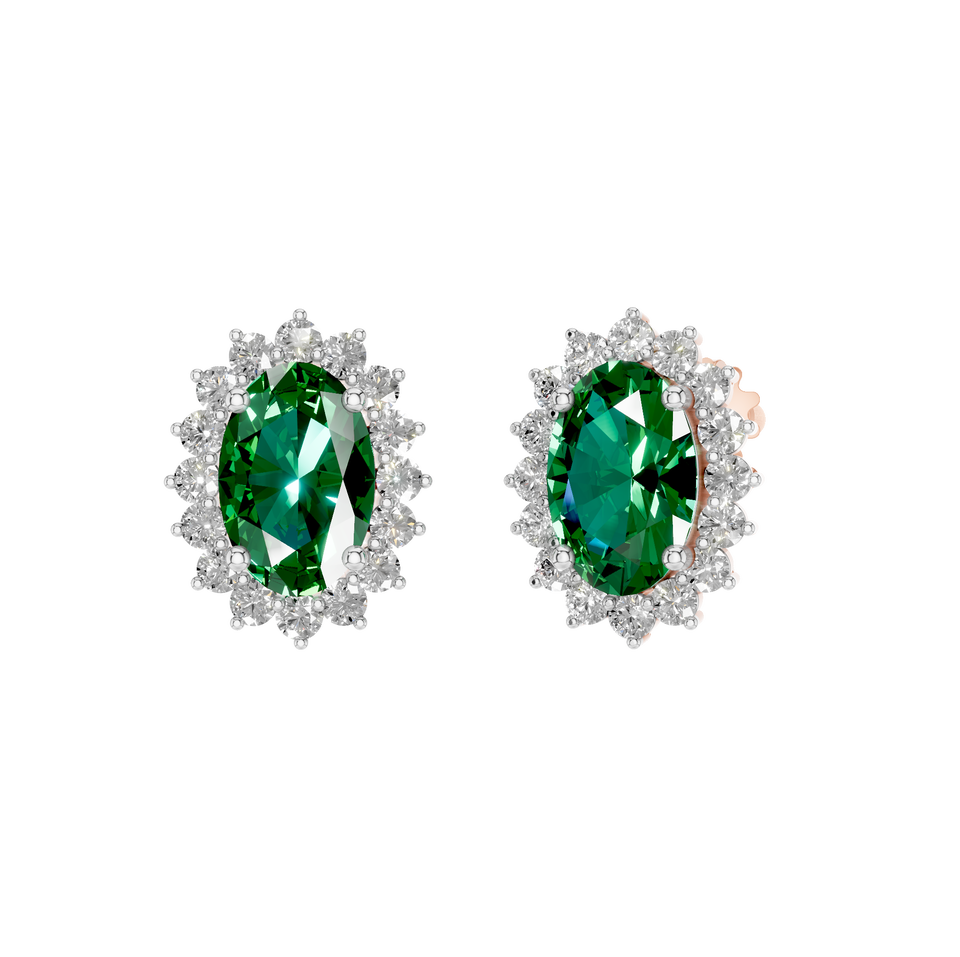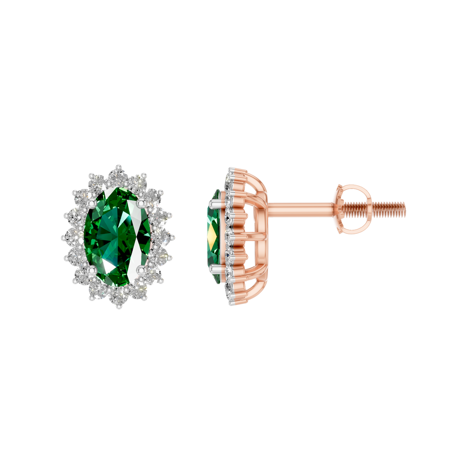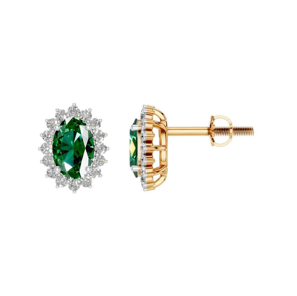 Oval-Cut Emerald Halo Stud Earring with Natural Diamonds
