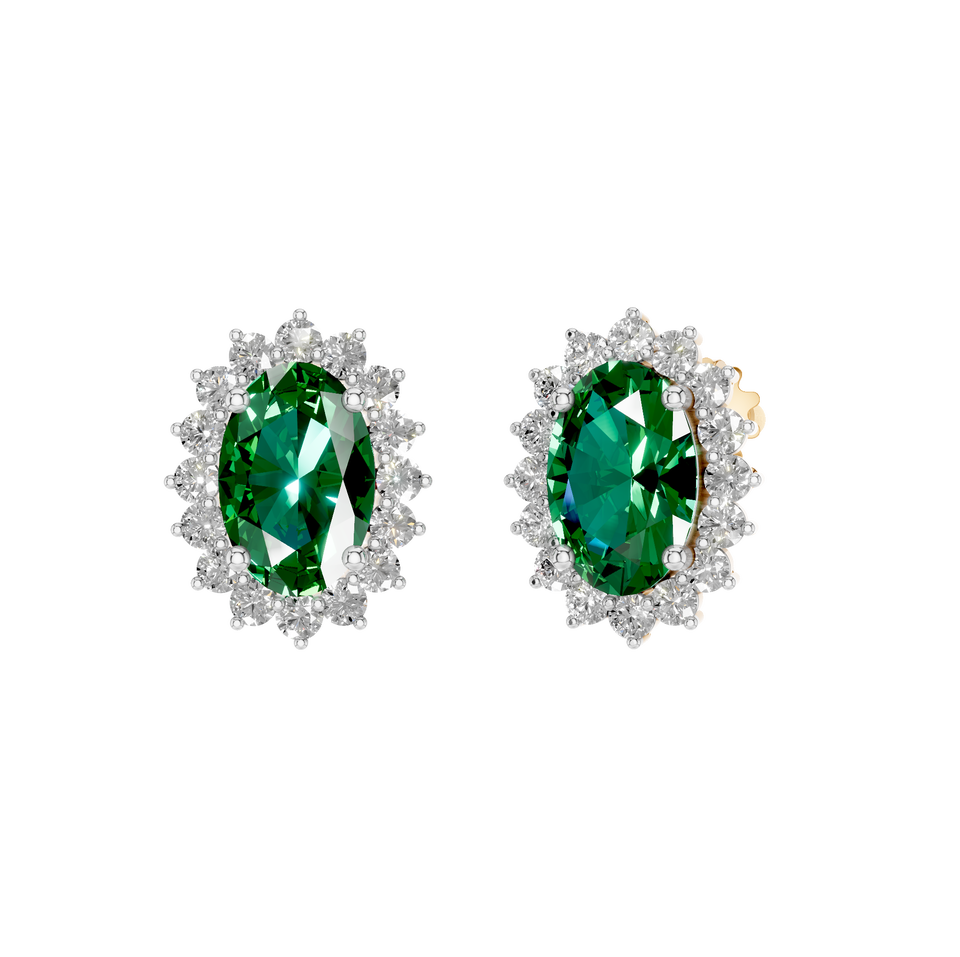Style:Oval-Cut Emerald Halo Stud Earring with Natural Diamonds