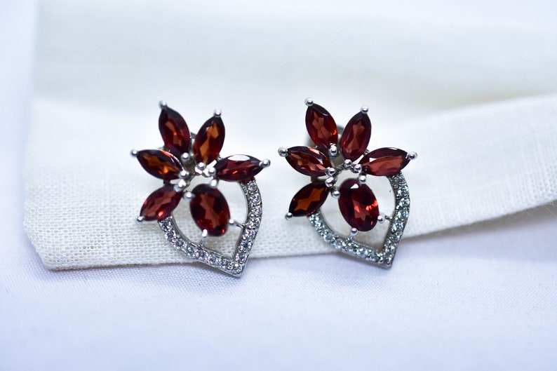 Elegant Natural Garnet Gemstone Earrings 925 Sterling Silver Handmade Designer Jewelry for Wedding Anniversary Gift
