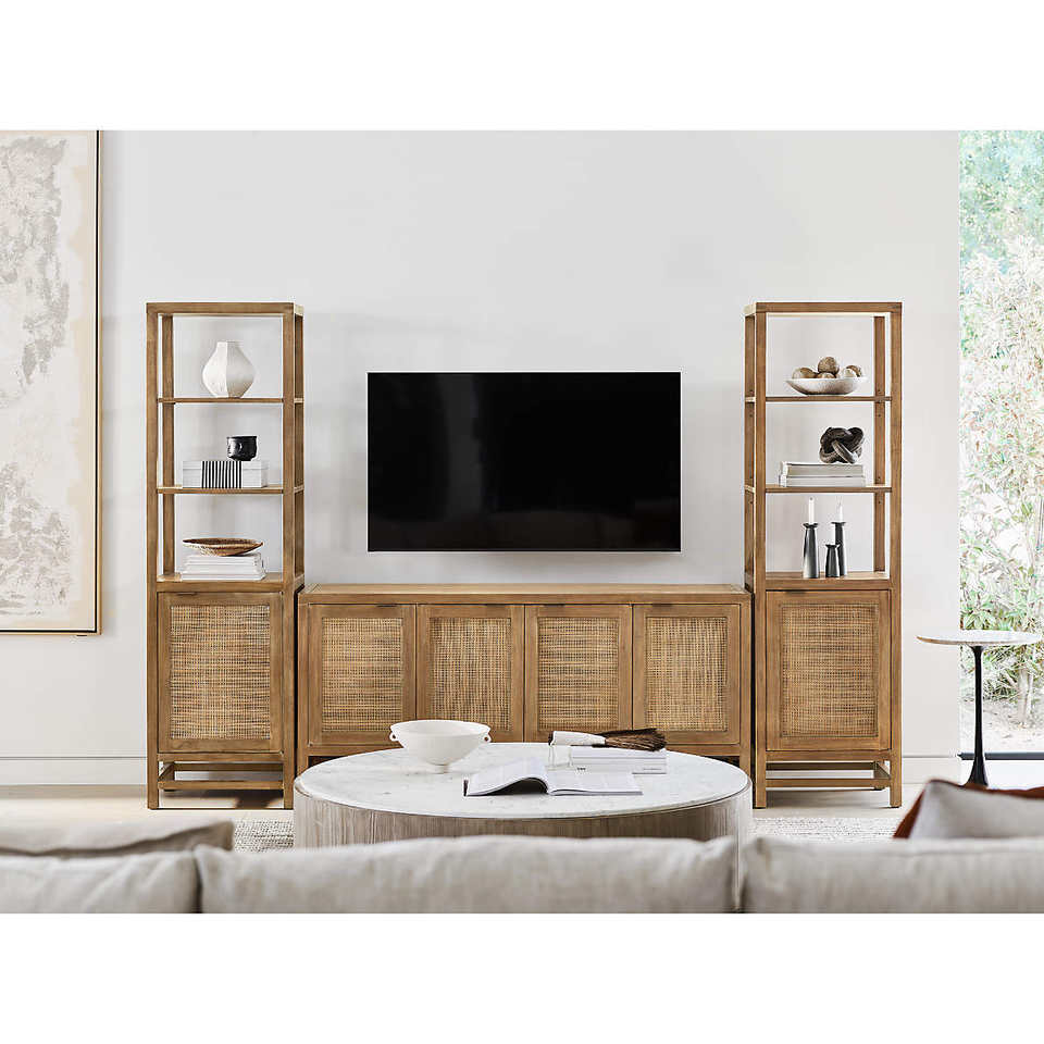 Elegant Natural Rattan Accent Storage Cabinet Wooden and Rattan Tall Storage Cabinet Perfect for Living Room Furniture