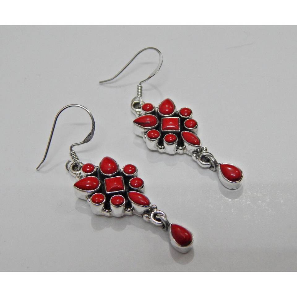 Elegant Natural Red Coral Earring 925 Sterling Silver Wedding Boho Anniversary Gift and Rose Gold Finish for Her