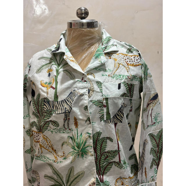 Elegant Nature Custom Printed White Colour 100 Percent Cotton Long Sleeve Comfy Night Sleep Tops For Women On Wholesale Price