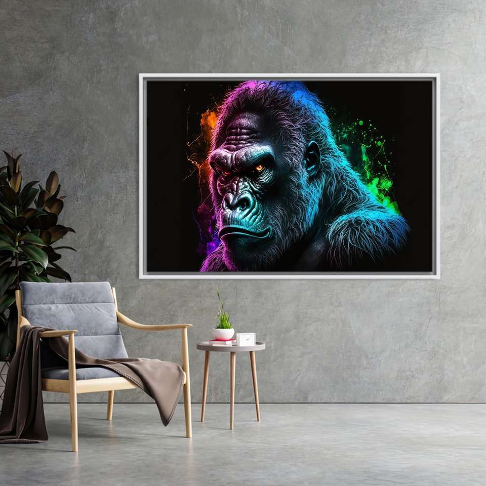 Elegant Neon Animal Print Canvas: Modern Wildlife Wall Art,WHITE FRAMED CANVAS
