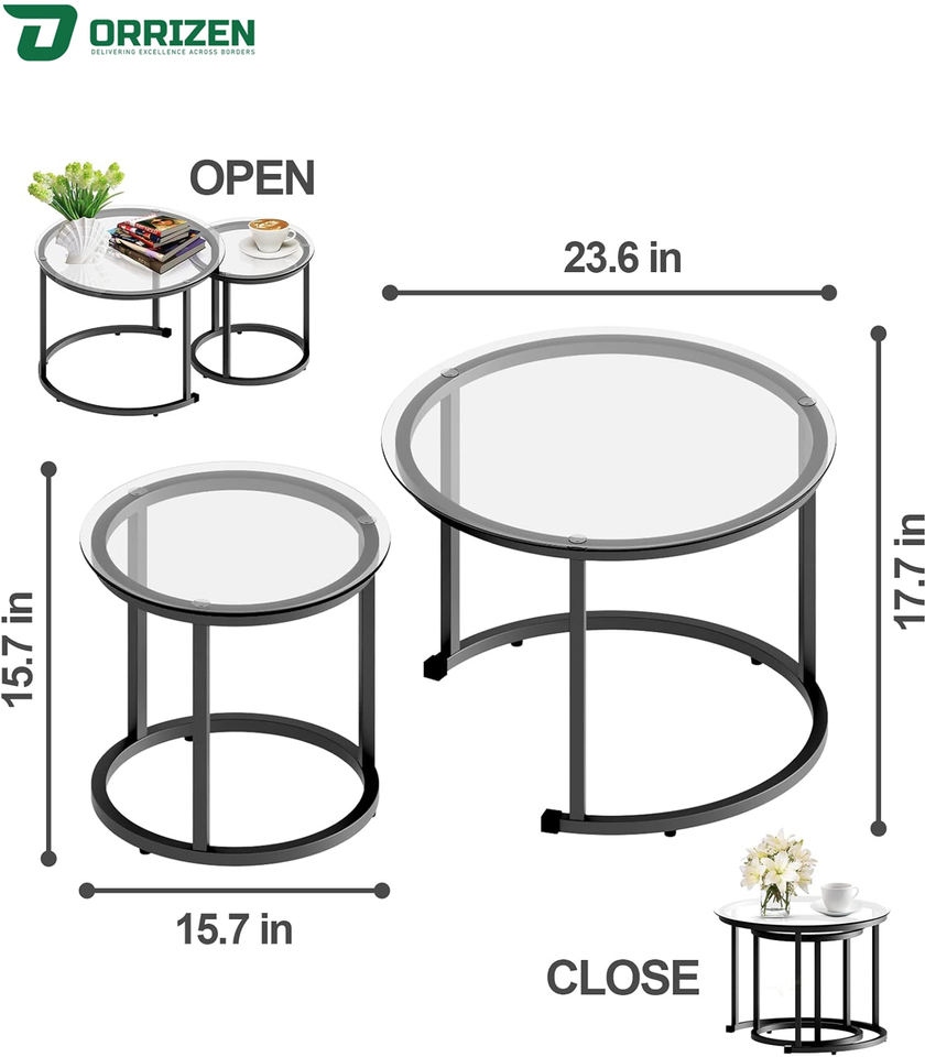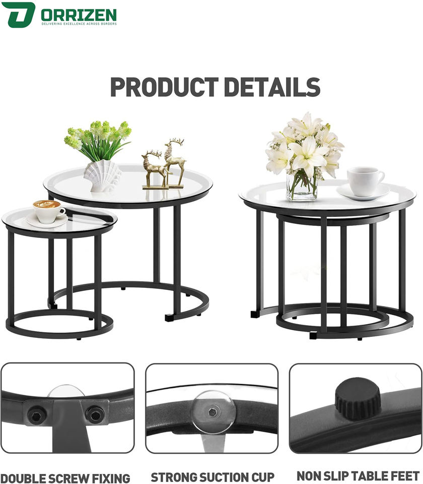 Product name:Elegant Nesting Tables Matt Black & Glass making them
