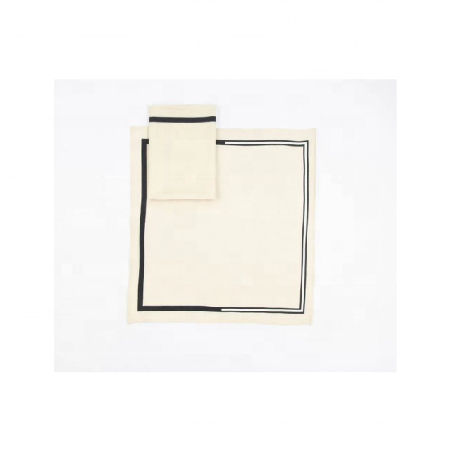 Elegant New Cream Black GOTS Certified Cotton Napkins 50x50 CM 200 GSM With Custom Embroidered Designs For Home Entertaining