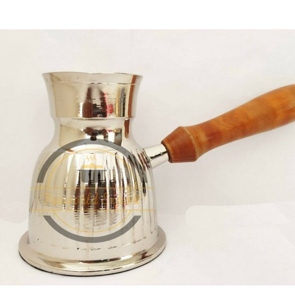 Elegant New Designer Turkish Coffee Pot 350ml Capacity with Wooden Handle Pure Brass Metal Engraved for Drinkware