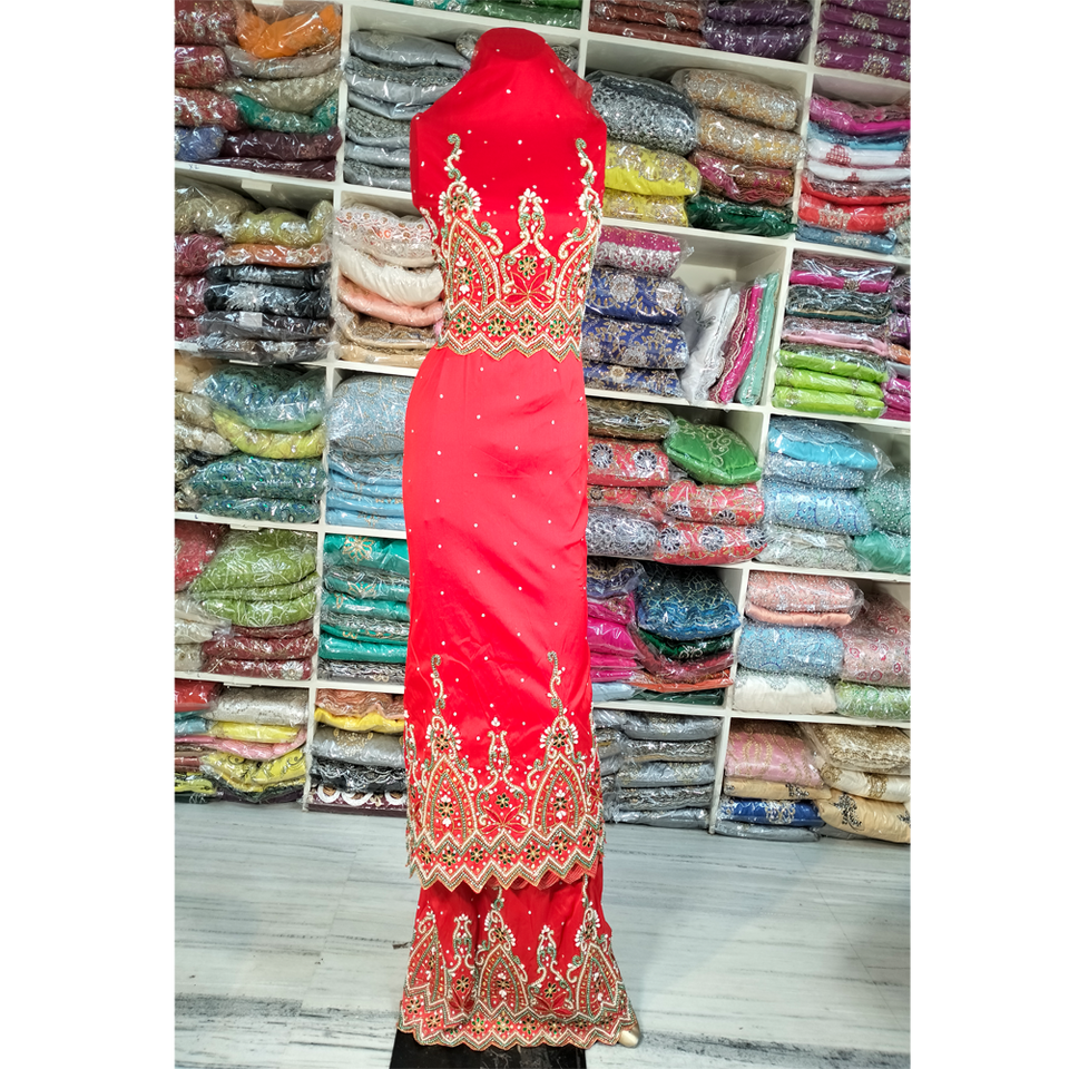 Elegant Nigerian Traditional Wedding George Full Hand Work African Print Silk Clothing with Stone Beaded Hot Headtie