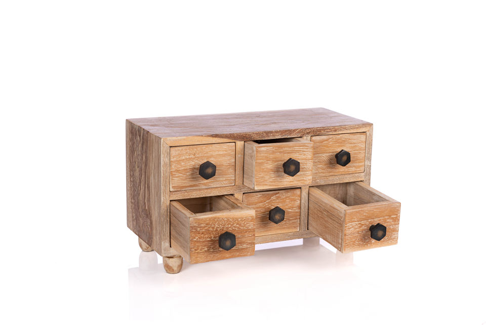 Elegant Nono Small Square 6-Drawer Wood Storage Chest for Jewelry Functional Packaging for Bedrooms Living Rooms Other Spaces
