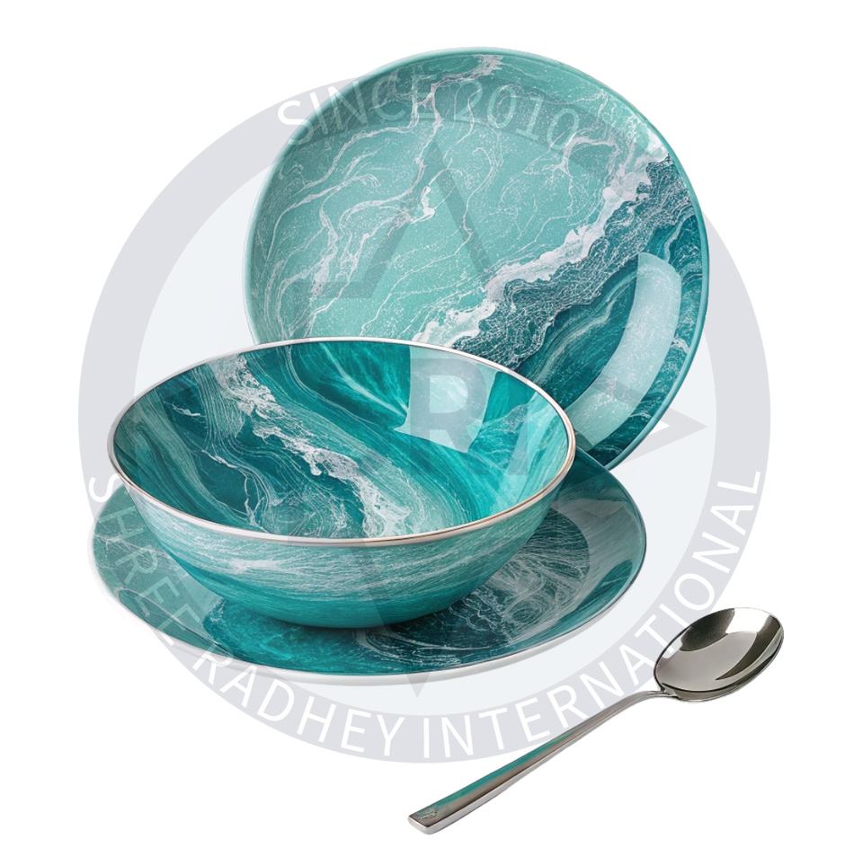 Elegant Ocean Textured Round Stainless Steel Plate for Family Gatherings and events