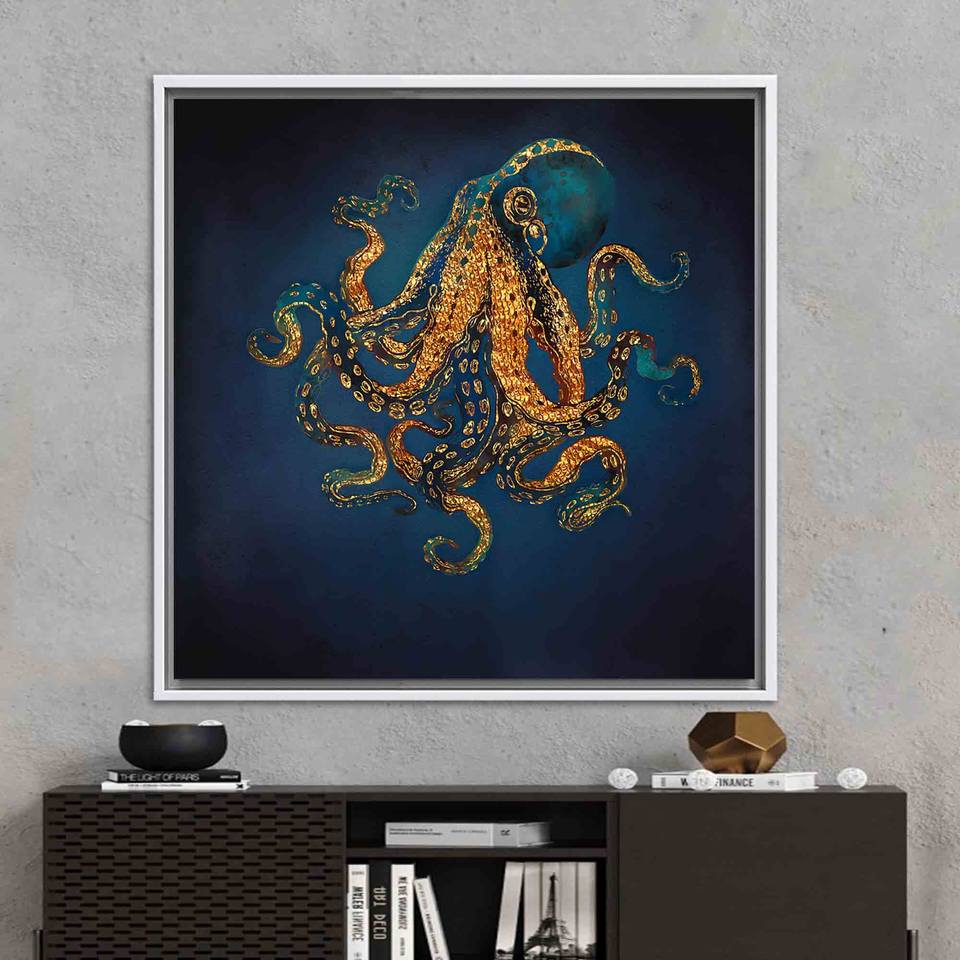 Elegant Octopus Canvas Print: Modern Wall Art for Home Decor,WHITE FRAMED CANVAS