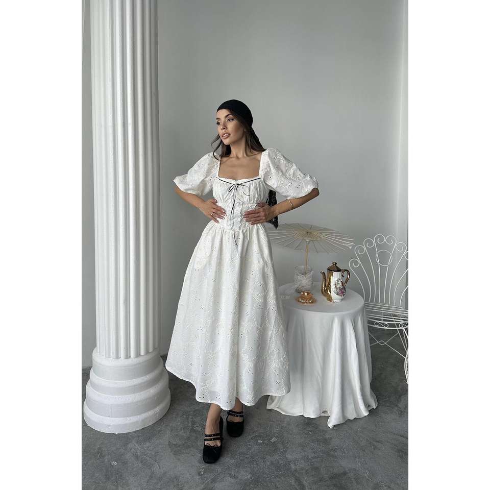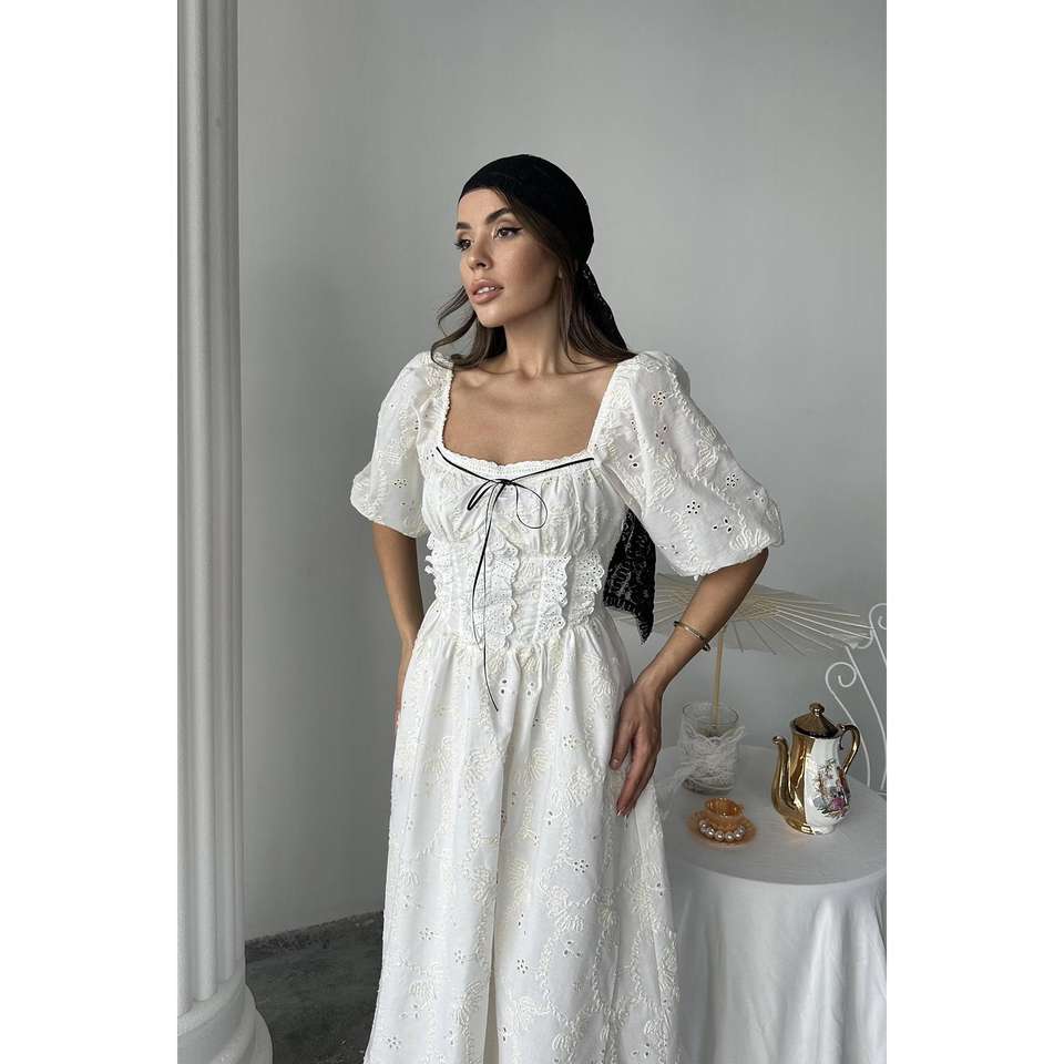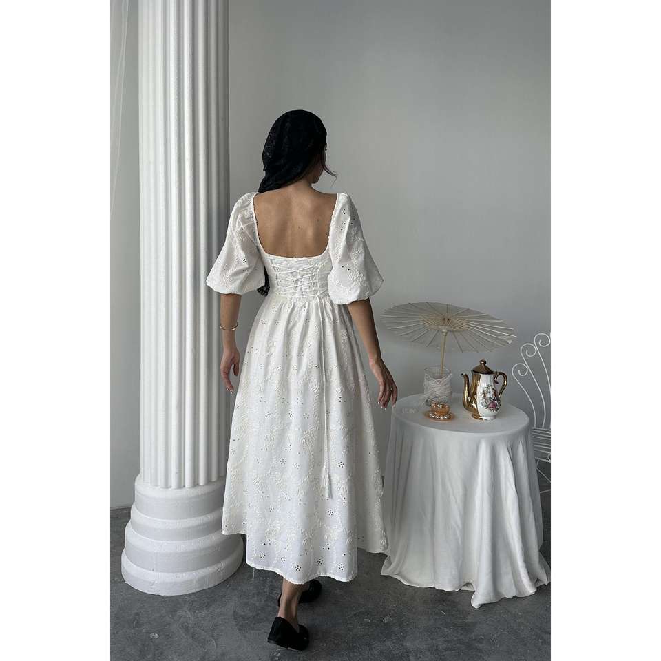 Elegant Off White Embroidered Lace Dress Square Neck Empire Waist A Line Vintage Cocktail Dress Breathable Ecru
