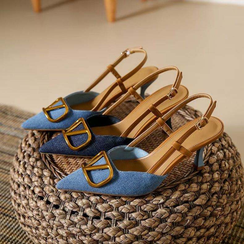 Elegant Open Toe Women's Leather High-Heeled Shoes with Steel Toe New French Style Summer Sandals Evergreen