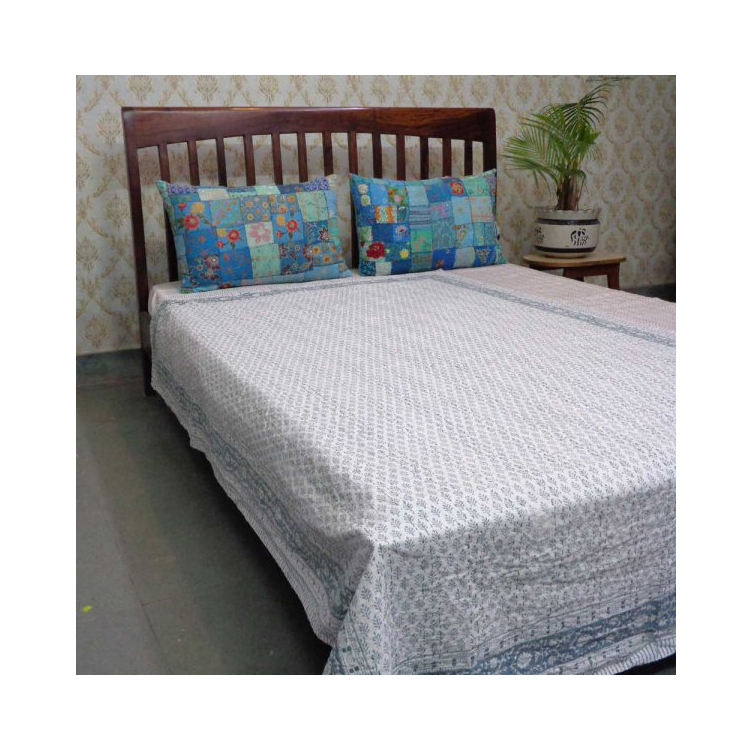 Elegant Organic Cotton Kantha Throw Quilt Handcrafted Block Printed Twin Size Blanket for Home Hotel Decor Hot Sale