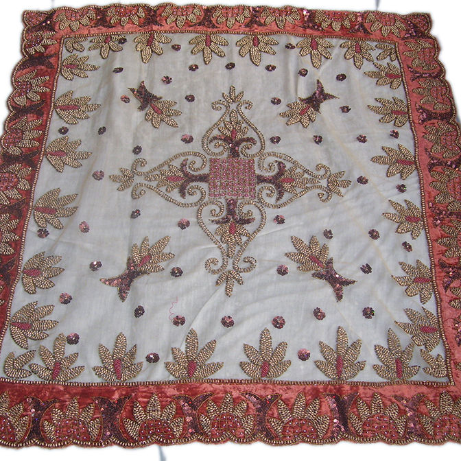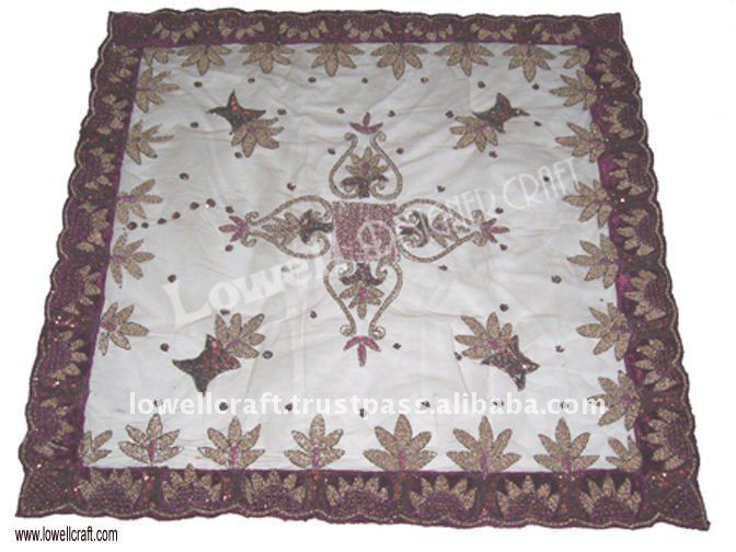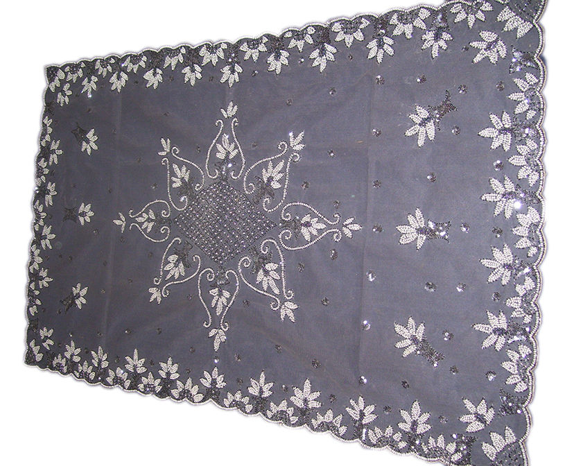 Elegant Organza with Velvet Geometric Embroidered Table Cover Customizable Luxury Tablecloth for Eid Holidays and Everyday Decor