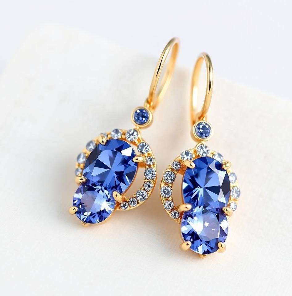Elegant Oval Blue Hydro & CZ Stud Earrings 925 Sterling Silver with 18K Gold Plated Bridal Accessory Cocktail Party Wear