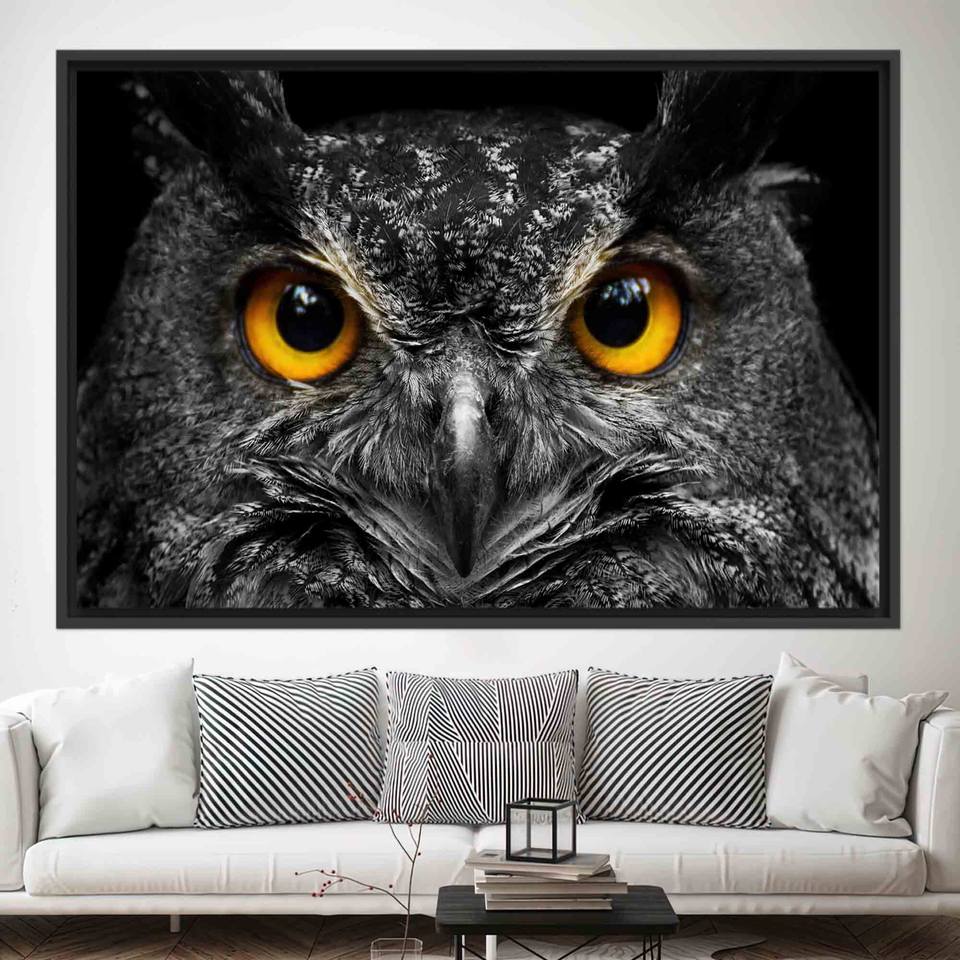 Elegant Owl Canvas Art: Printed Animal Wall Decor for Home,1P:Black Framed