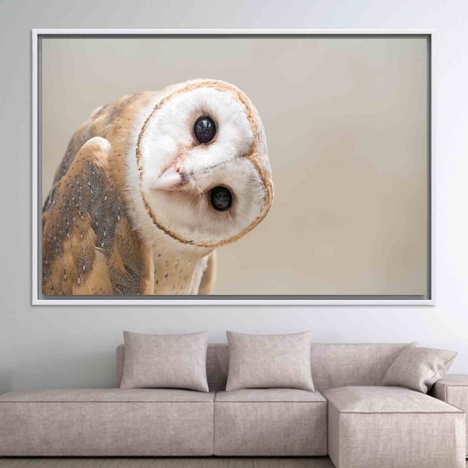 Elegant Owl Graphic Print: Modern Canvas Artwork for Loft Decor,WHITE FRAMED CANVAS