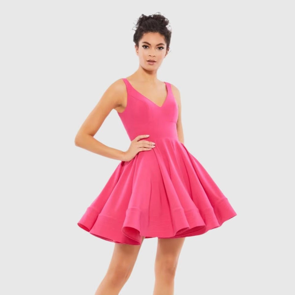 Elegant Plain V-Neckline Midi Dress with Circular Evening Style Short Casual Party Wear for Prom and Casual Occasions