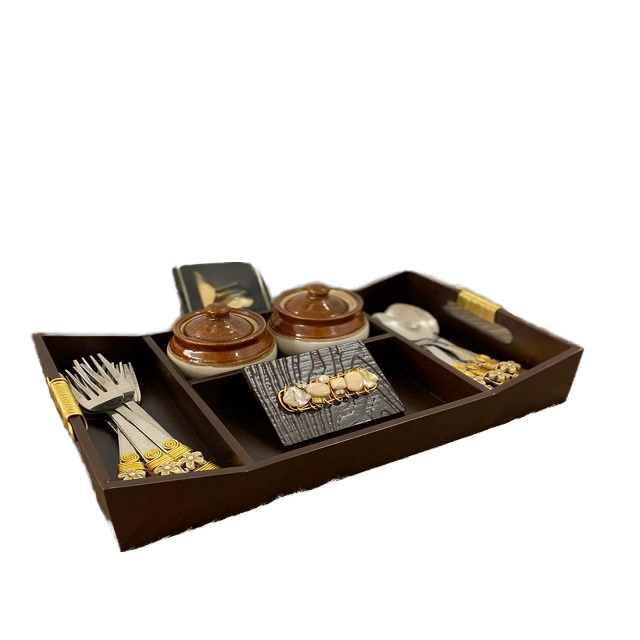 Elegant Practical Wood Dining Organiser with Stylish Salt Pepper & Pickle Dip Tissue Boxes for Home Use