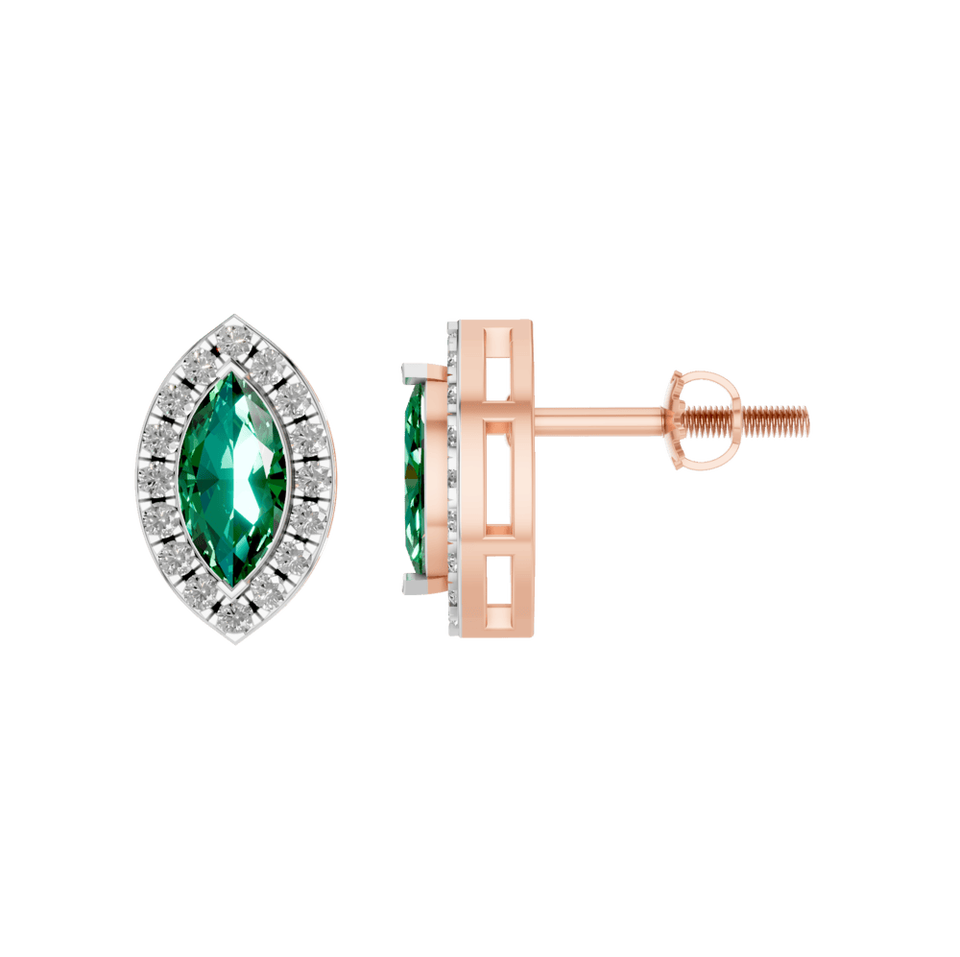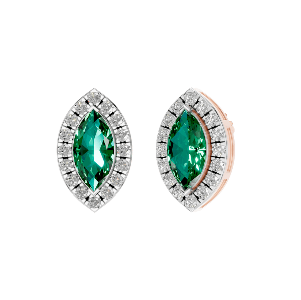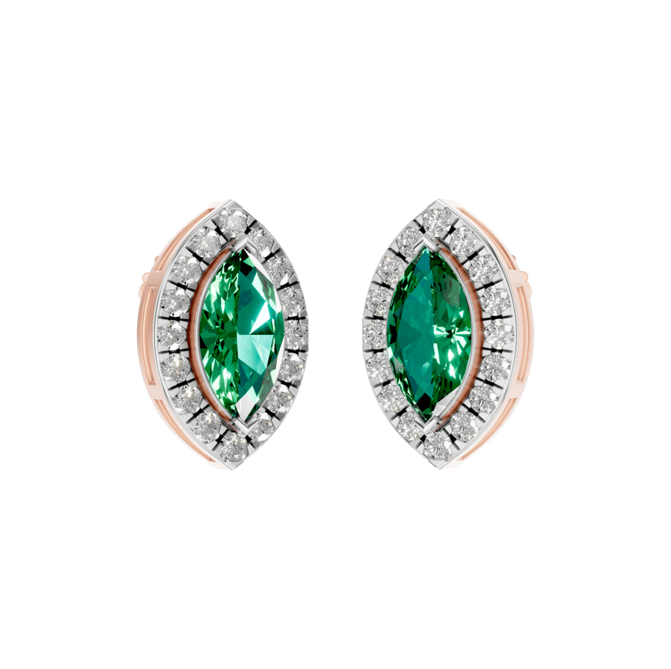 Style:Marquise Shape Emerald Stud Earrings with Natural Diamonds