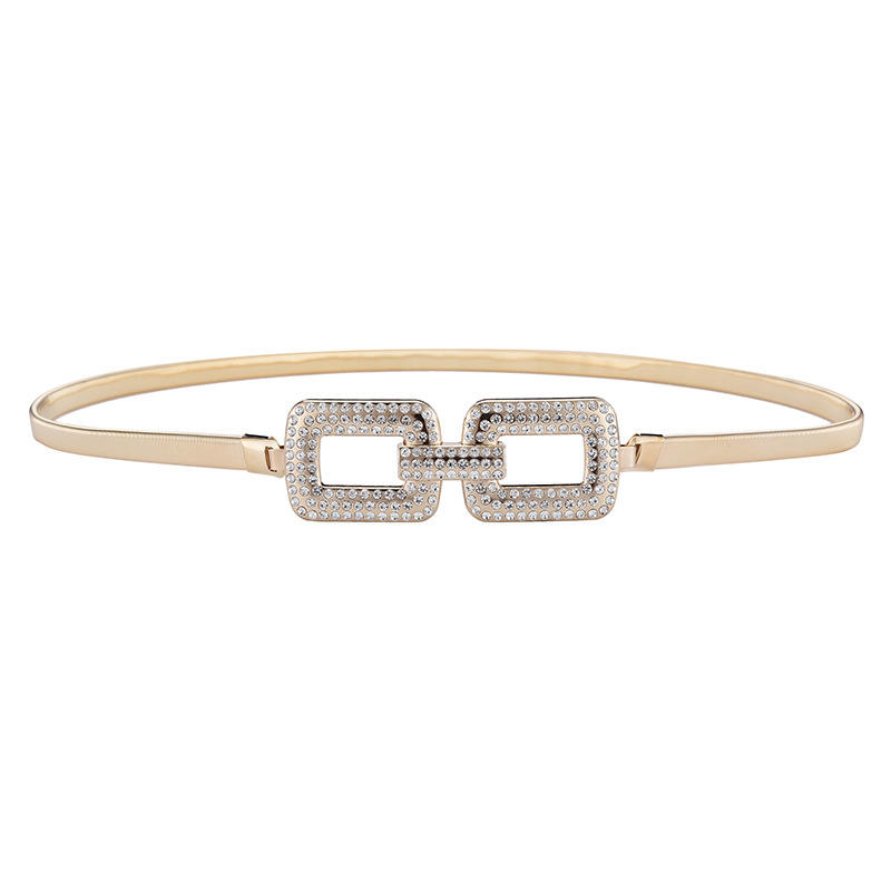 Elegant Premium Beaded Belt Chain for Ladies Gold Double Circle Buckle Elastic Waistband Dress Coat Decoration