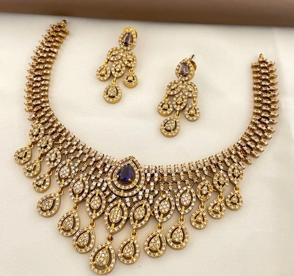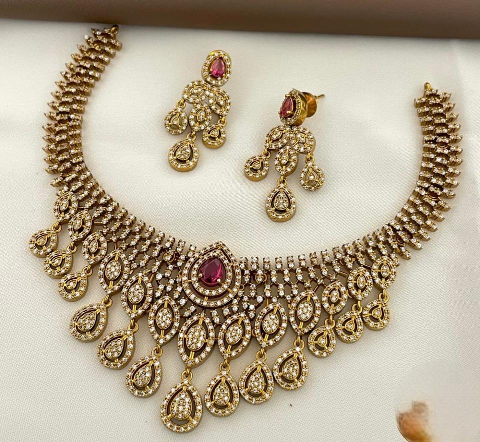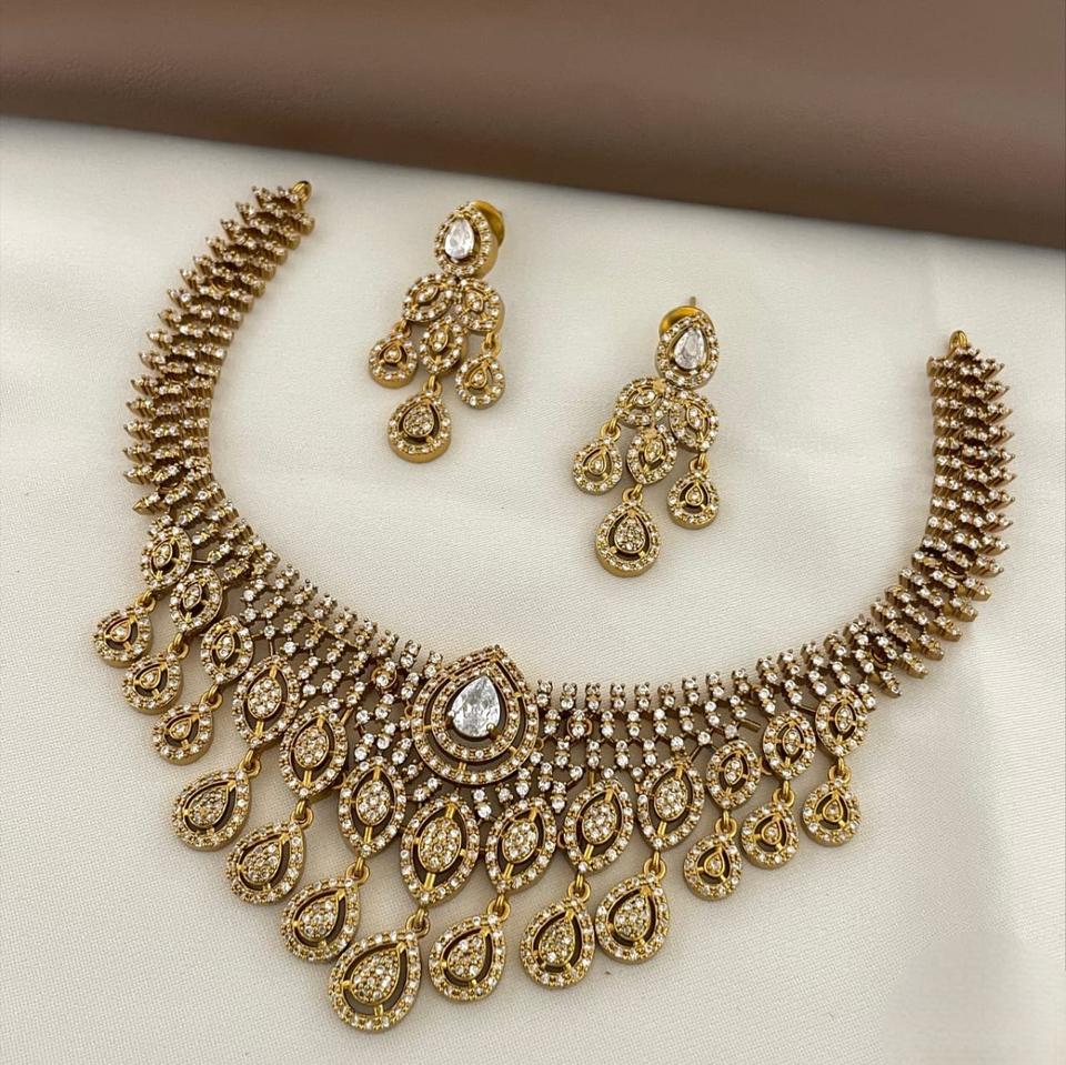 Elegant Premium Quality Gold Polish Stones Look Necklace Set With Earrings for Wedding Festival Wear Collection For Women
