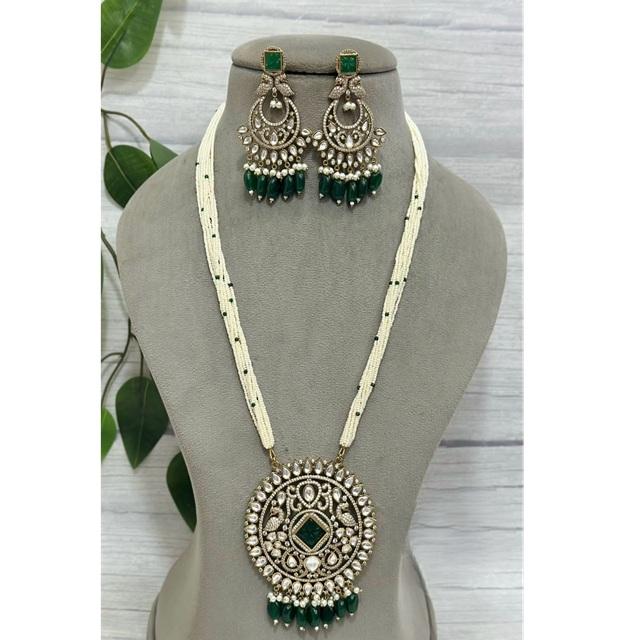 Elegant Premium Quality Moissanite Polki Kundan Pearl Pendant Necklace Set for Wedding and Party Wear for Women