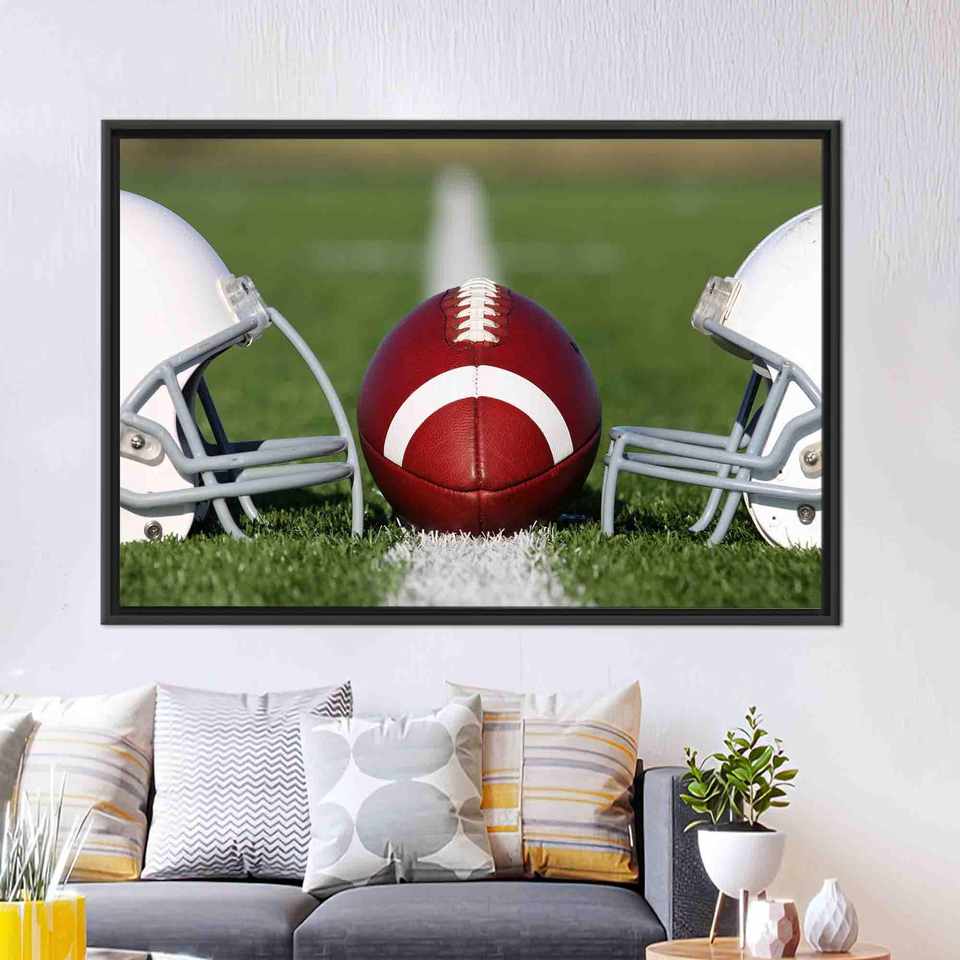 Elegant Printed Canvas Artwork: American Football Wall Decor,1P:Black Framed