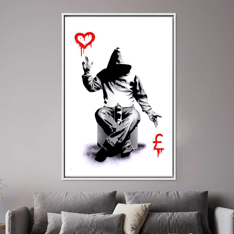 Elegant Printed Canvas Artwork: Banksy Style Urban Decor,WHITE FRAMED CANVAS