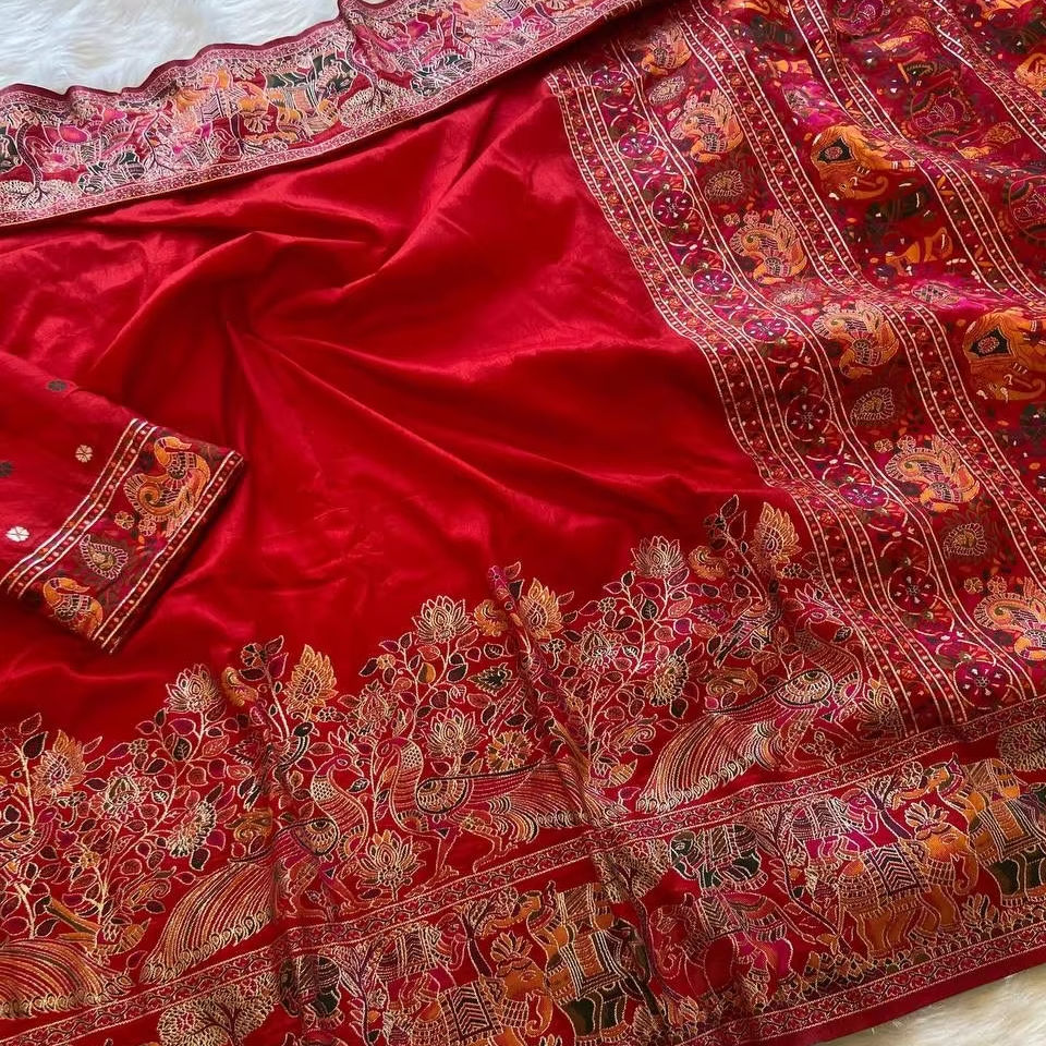 Weaving Saree With Kashmiri Thread Wooven Pallu Having Fancy Tassels