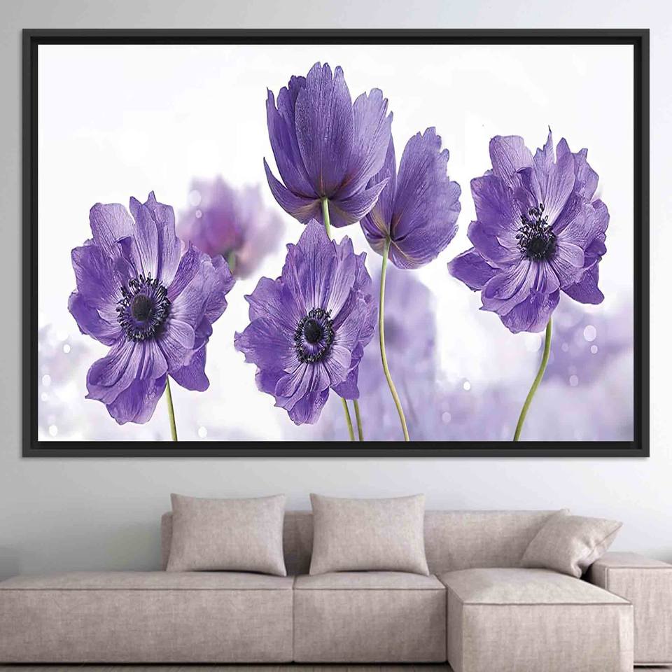 Elegant Purple Flower Printed Canvas Art: Modern Wall Decor,BLACK FRAMED CANVAS
