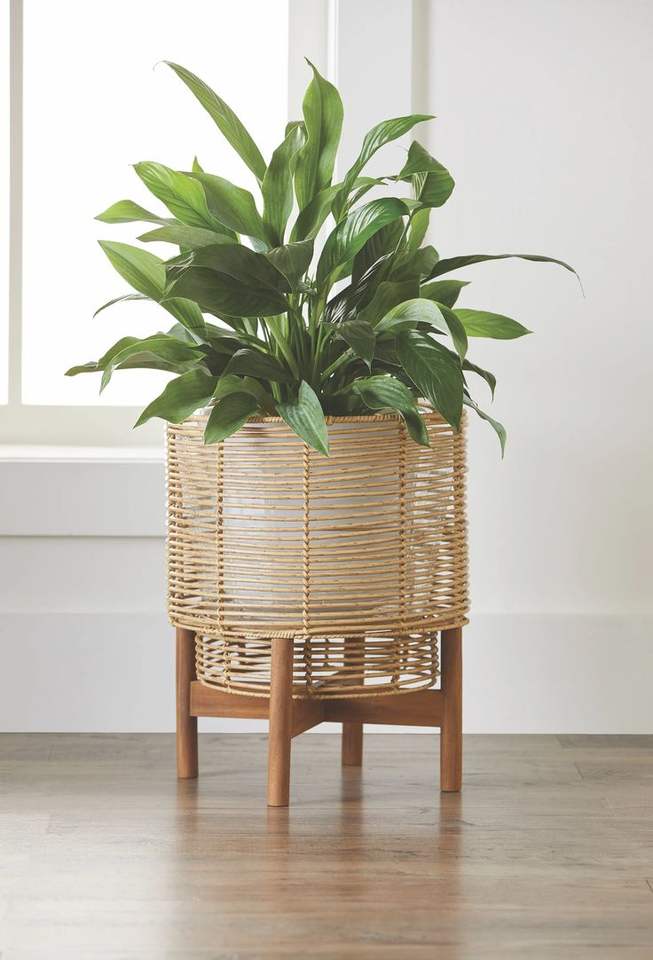 Elegant Rattan and Iron Planter Pot Display Rack for Home Indoor and Outdoor Use Floor Usage Plant Stand for Planting