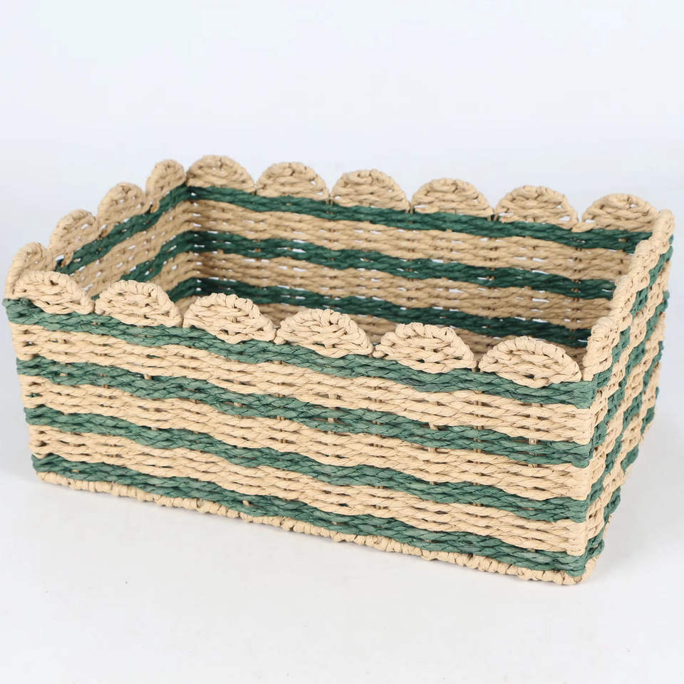 Elegant Rectangular Seagrass Storage Basket Natural Green Home Decor