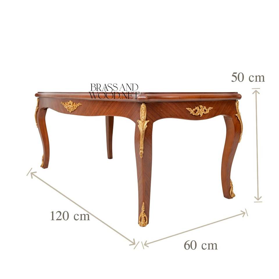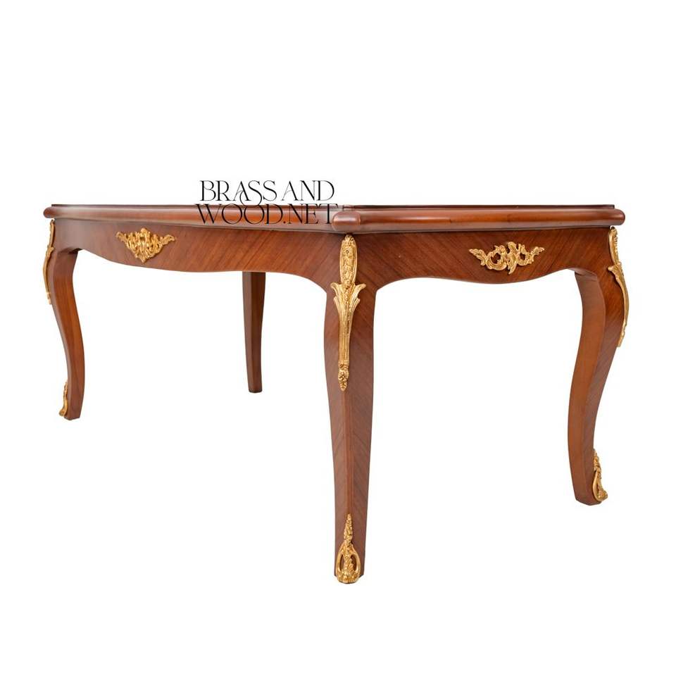 Elegant Rectangular Wooden Coffee Table with Diamond Pattern Veneer Top and Gold Brass Accents for Luxury Living Rooms
