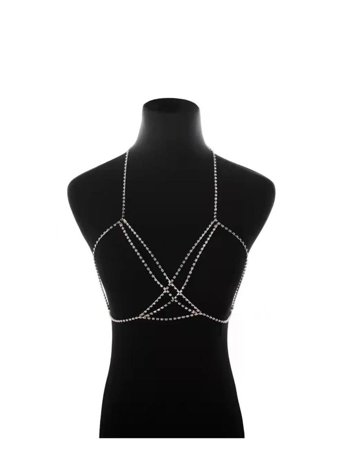 Elegant Rhinestone Body Chain with Tassel Bikini Design