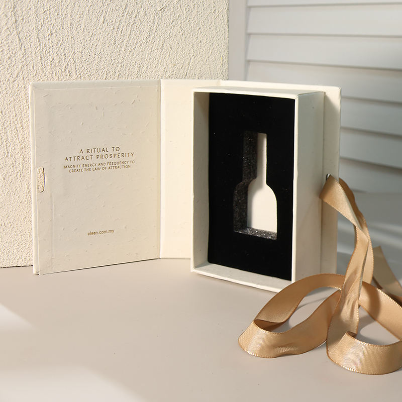 Elegant Rigid Cardboard Perfume Gift Box Magnetic Book Style with Ribbon and Custom Foam Lining